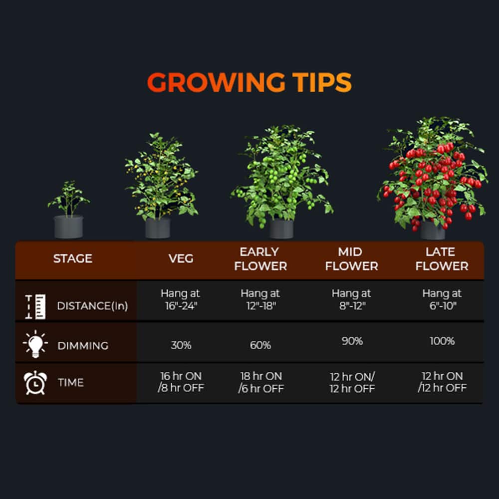 - 最適化されたフルスペクトル: 植物の成長の全ステージに適したフルスペクトルを採用しています。