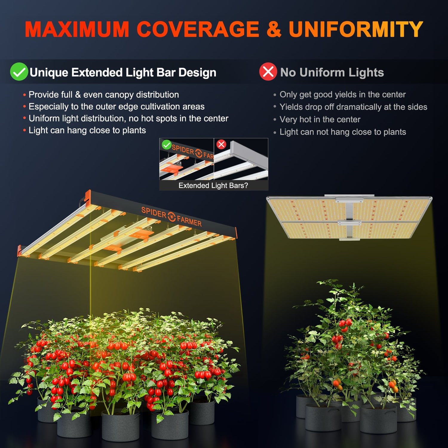 Spider Farmer® SE5000 480W LED栽培ライト:高効率で調光可能なフルスペクトラム照明