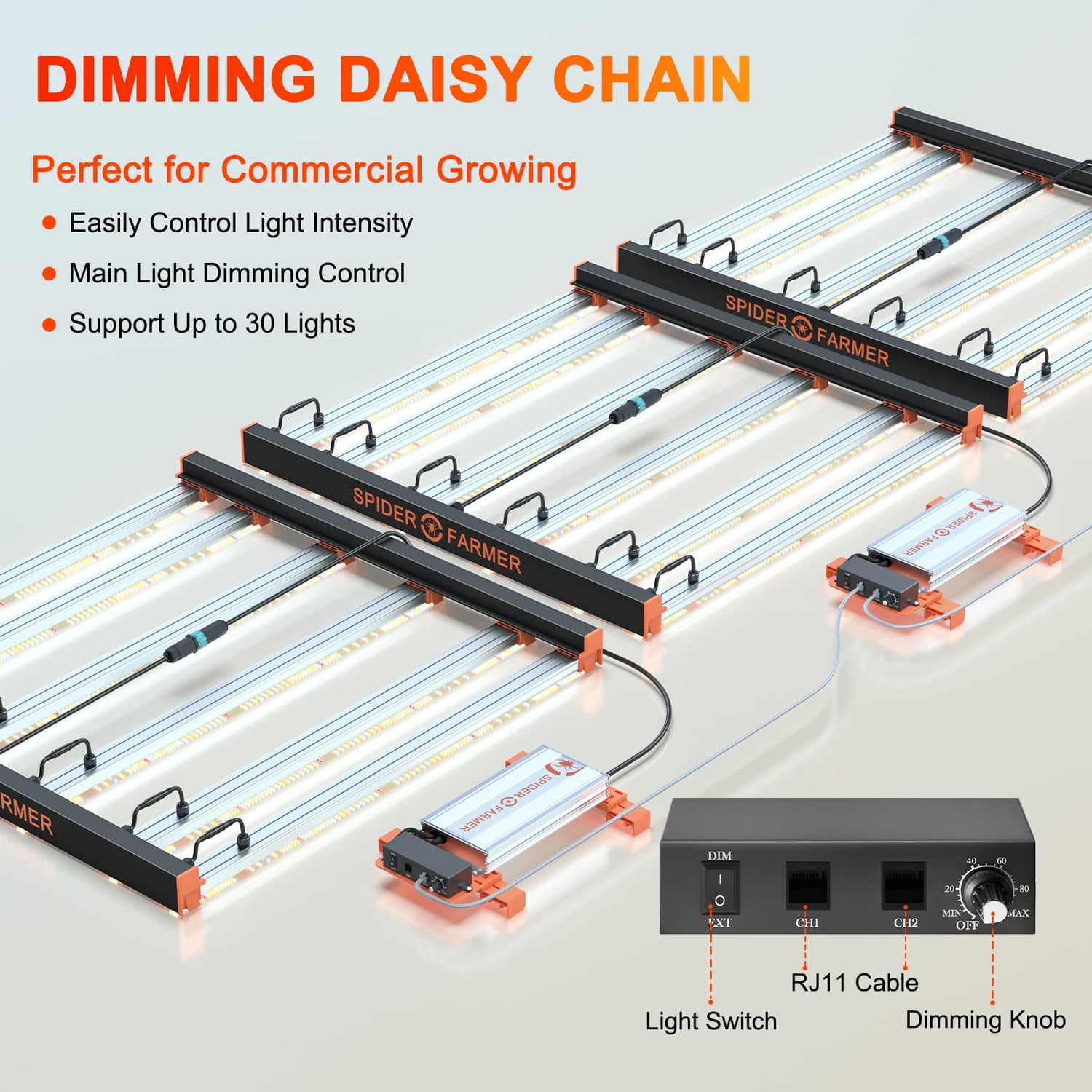 高い効率と収量: SE5000は、1680個のSAMSUNG LM301Bダイオードを搭載し、480Wの消費電力で1368 umol/sを達成。PPEは2.75 µmol/Jと非常に高効率です。 調光可能なフルスペクトラム: フルスペクトラム照明は、植物の成長の全サイクルに適しており、調光ノブで光の強度を簡単に調整できます。 パッシブ冷却&取り外し可能なドライバー: バーライトのデザインと背面のアルミニウム素材が優れた空気流と熱放散を促進。取り外し可能なドライバーと長い電源コードにより、栽培スペースの環境熱を減少させ、ライトの寿命を延ばします。 デイジーチェーン調光: 最大30台までのSpider Farmer栽培ライトを連結し、複数のライトの明るさを同時に調整できます。商業栽培、ホームグロー、ハイドロポニックスなど、幅広い用途に対応します。 SE5000は、その高性能と使いやすさで、あらゆるレベルの栽培者にとって理想的な選択です。このライトを使用することで、植物はより健康的に成長し、収穫量が向上します。Spider Farmer® SE5000で、あなたの栽培環境を最適化しましょう。